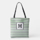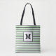 Cute Green Stripes Custom Single Initial Black Tote Bag