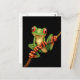 This adorable design features a small green tree frog holding on to a thin branch. The tiny frog is looking forward with it's head tilted slightly to one side giving it a curious look. All four of the frog's feet are wrapped around a thin branch that moves from the bottom of the design up to the right side of the pattern. This unique design is a cute example of this wonderful little rain forest creature.