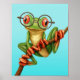 Cute Green Tree Frog with Eye Glasses on Blue Poster
