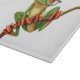 This adorable design features a small green tree frog holding on to a thin branch. The tiny frog is looking forward with it's head tilted slightly to one side giving it a curious look. All four of the frog's feet are wrapped around a thin branch that moves from the bottom of the design up to the right side of the pattern. Reading glasses sit on the frogs nose which gives the pattern a playful look and intelligent feel. This unique design is a cute example of this wonderful little rain forest creature.
