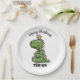 Cute Green Tree Rex Dino Lights Merry Christmas Paper Plate