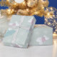 Sweet rabbits with red and white sweaters hop around as snowflakes fall against a soft green background. This kids Christmas gift wrap is perfect for wrapping holiday presents.