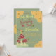 Cutest Baby Shower invitation design with little bees, red mushroom and bird with worm in its mouth. Red, yellow and orange text on a light green background. Same colour background and same text and little bee on the back of the card.