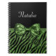 Cute Green Zebra Print FAUX Glitz Bow With Name Notebook