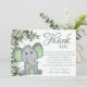 Cute Greenery Gender Neutral Elephant Baby Shower Thank You Card