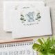 These simple yet elegant envelopes feature an adorable baby elephant and modern watercolor greenery in soft green & gold.