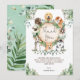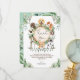 Whimsical thank you card featuring illustration of rustic watercolor greens, foliages and adorable puppies