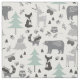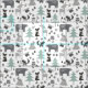 Cute Grey and Teal Woodland Animals Fabric