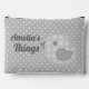 Cute Grey Baby Bird and Polka Dot Personalised Accessory Pouch
