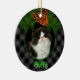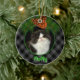 Cute grey black plaid pinecone pet photo template ceramic ornament