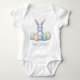 Cute Grey Bunny Rabbit With Easter Eggs Name White Baby Bodysuit