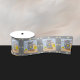 Adorable ribbon with the pattern of a grey little cartoon mouse eating some Swiss cheese .