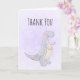 Thank you greeting card with a cute illustration featuring a grayish purple dinosaur.