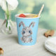 Personalise your sons easter party with these blue paper cups featuring a cute grey easter bunny. Easy to edit text to suit your own easter or birthday celebration. To change the name or occasion click on the personalise button. This design contains some elements of A.I.