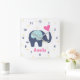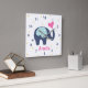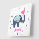 Cute Grey Elephant and Pink Heart Personalised Square Wall Clock