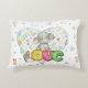 A soft white baby/ kid pillow features a central light pink heart. A cute grey elephant sits within, surrounded by playful themed illustrations. Below, the word "LOVE" is uniquely textured, adding a whimsical touch to the gentle design.