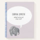 A cute, grey elephant with a simple white speech bubble smiles on a pale lilac purple background. Personalise the text to make this a kid friendly notebook perfect for school or home. Don't forget to add your contact information in case the notebook gets lost somewhere.