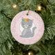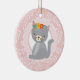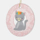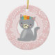 Cute Grey Kitten Pink White Cat Ceramic Ornament
