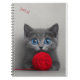 Cute Grey Kitten Playing with Red Wool Ball Notebook