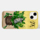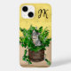 Cat lover's phone case. Cute grey kitten sitting mischievously in a pot of cat nip.