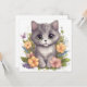 Cute Grey Kitty with Flowers Kawaii Chibi