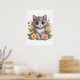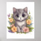 Cute Grey Kitty with Flowers Kawaii Chibi Poster