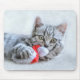 Cute Grey Tabby Cat w/ Christmas Hat Xmas Mouse Pad