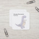 Business cards with a cute illustration featuring a grayish purple dinosaur.