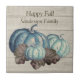 Happy Fall Personalised custom Rustic Cute Grey Wood Autumn Fall Blue Pumpkin ceramic tile.