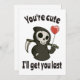 Funny and lovely Grim Reaper with romantic heart balloon says “You're cute, I'll get you last". Perfect for Valentines Day as well as for Halloween. For kids and for adults.