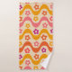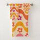 Cute Groovy flowers pattern on retro waves Bath Towel Set