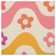 Cute Groovy flowers pattern on retro waves Fabric