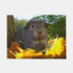 Adorable photo of a brown guinea pig surrounded by autumn leaves.
