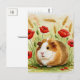Cute Guinea pig Cavia Cavy Poppy Poppies Wheat Flowers Postcard for Postcrossing