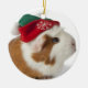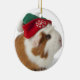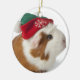 Cute Guinea Pig With Christmas Hat On White Metal Ornament