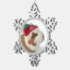 Cute Guinea Pig With Christmas Hat On White Snowflake Pewter Christmas Ornament