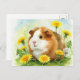 Cute Guinea pig with dandelions Spring Cavia Cavy Greetings Postcard for Postcrossing