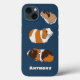 Show off your love of guinea pigs with this personalised phone case. It features realistic style illustrations of three guinea pigs set against a navy blue background with a spot to add a name below the graphics.