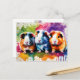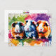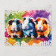 This postcard shows three cute guinea pigs with splashes of colour. Cute, popular pets for children and adults too! The postcard can be customised on the reverse (with or without a small picture, with or without text). Send a loving greeting or hang up the card as a wall decor.