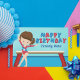 This cute custom girls gymnastics birthday card features a pretty brunette gymnast girl standing in front of a beam. She is wearing a red leotard and smiling to next to her beautiful blue monogram.