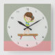 Cute gymnastics girl square wall clock