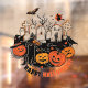 Cute Halloween  Window Cling with Pumpkins, Bats, Tomb Stones, Witch and Black Cat Playing a Violin
