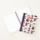 Large sketchbook with cute pattern of woodland animals wearing halloween costumes, personalised with your name.