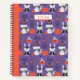 Large sketchbook with cute pattern of woodland animals wearing halloween costumes in purple and orange, personalised with your name.