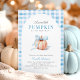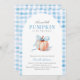 Celebrate your fall baby in the most charming way with this blue gingham baby shower invitation. Featuring a soft watercolor pumpkin tied with a pastel blue bow, this design perfectly blends rustic fall charm with modern elegance. Whether you're planning a cosy autumn gathering or a sweet seasonal celebration for a baby boy, this invitation sets the perfect tone. Personalise the details, send it to your guests, and get ready for an unforgettable shower filled with love, laughter, and a whole lot of pumpkin spice vibes!