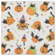 This adorable fabric features cute black cats with pumpkins, jack o' lanterns, candy, and text "Happy Halloween". Perfect for a Halloween projects.