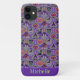 This Cute Halloween phone case has a cute Halloween sweater pattern is based off of the theme of classic Fair Isle knitted designs. The pattern is of purple and green circles and diamond stripes. Each shape has a different cute Halloween motifs in it. You have black cat with a moon, Frankenstein’s head, happy jack o’ lantern pumpkin, skull with red eye raven, witches hat with feet, grave yard with ghosts, vampire lips/teeth with bats, and a picketed fence yard with a fall tree the moon with a bat. In-between the designs are candy corn, wrapped candy and a diamond design. At the bottom in matching colours is a name. Personalise this with your own name.