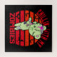 Adorable zombie design with Teddy Bear all bandaged up, walking like a zombie and bats on a retro sunset background.