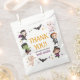 Make your Halloween celebration unforgettable with our custom Halloween party favour bags! Featuring adorable illustrations of a witch, ghost, Frankenstein, vampire, mummy, skeleton, and bats, these favour bags are the perfect way to thank your guests for attending your "spook-tacular" event.