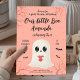Adorable Halloween-themed birthday card featuring a kawaii ghost holding a red heart, surrounded by flying bats and pastel spooky details. Perfect for kids’ October parties, fall birthdays, and not-so-scary Halloween celebrations. This cute pastel ghost design is sweet, festive, and ideal for adding a touch of fun to any spooky season gathering.